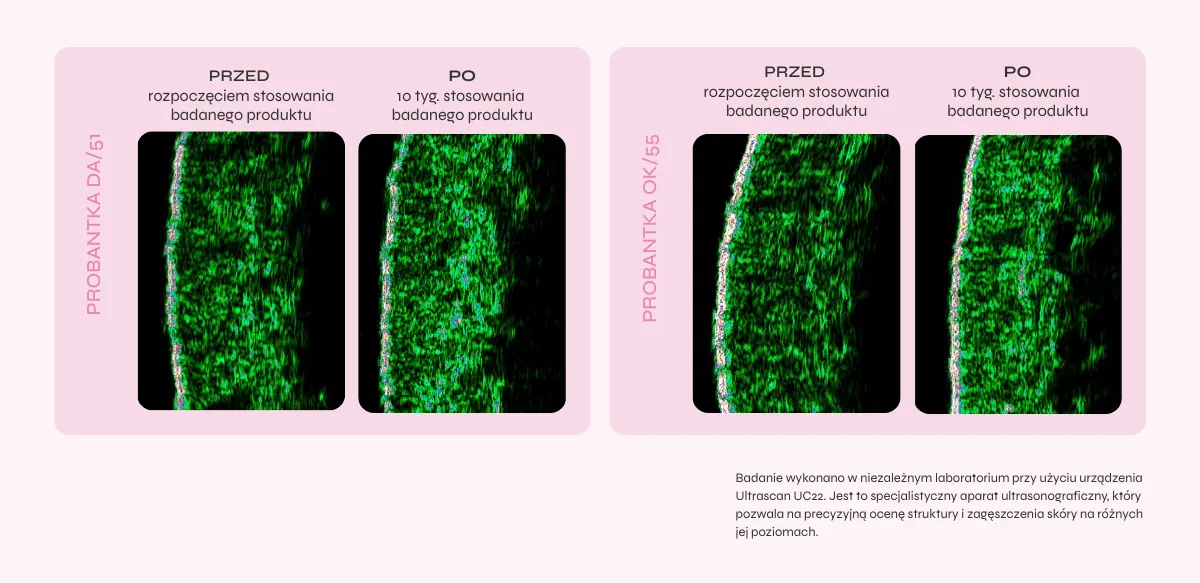 To dlatego wyniki badań aparaturowych są tak imponujące – składniki aktywne faktycznie docierają do głębszych warstw skóry.